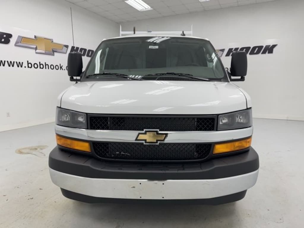 This 2025 Chevrolet Express 3500 comes equipped with Chrome Appearance Package (Chrome Grille and Front Chrome Bumper w/Step-Pad), Driver Convenience Package (Tilt Steering Wheel), Power Convenience Package (Power Door Locks w/Lock-Out Protection and Power Windows), Preferred Equipment Group 1WT, 2 Speakers, 3.42 Rear Axle Ratio, 4-Wheel Disc Brakes, ABS brakes, Air Conditioning, AM/FM radio, Cruise Control, Delay-off headlights, Driver & Front Passenger High-Back Bucket Seats, Driver & Front Passenger Vinyl Visors, Driver door bin, Driver's Seat Mounted Armrest, Dual front impact airbags, Dual front side impact airbags, Electronic Stability Control, Engine Cover Console w/Swing-Out Storage Bin, Exterior Parking Camera Rear, Front anti-roll bar, Front Bucket Seats, Front wheel independent suspension, Fully automatic headlights, Heavy-Duty Locking Rear Differential, Inside Rearview Mirror w/Rr Vision Camera Display, Low tire pressure warning, Occupant sensing airbag, Outside Temperature Display, Overhead airbag, Passenger cancellable airbag, Passenger door bin, Passenger seat mounted armrest, Power steering, Radio: AM/FM Stereo w/MP3 Player & Digital Clock, Reclining High-Back Bucket Seats w/Inboard Armrests, Remote Keyless Entry, Single Rear Wheel Configuration, Tachometer, Theft Alarm Notification, Traction control, Trailering Wire Harness, Trip computer, Variably intermittent wipers, Vinyl Seat Trim, Voltmeter, and Wheels: 16 x 6.5 8-Lug Painted Steel HD (4) $500 - Exp. 12/31/2026