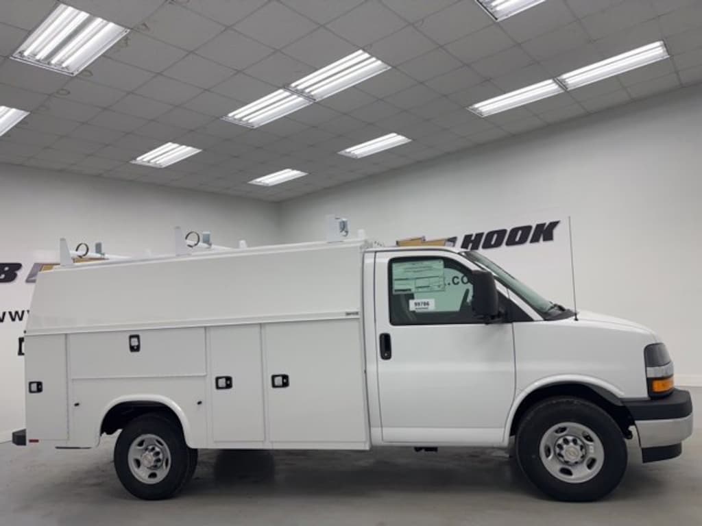 Summit White 2026 Chevrolet Express 3500 Work Van Cutaway RWD 8-Speed Automatic 6.6L V8Contact our Internet Department for pricing and availability. We want to earn your business! Bob Hook was voted Best of Louisville for Auto Service, because customer satisfaction is our #1 Goal. . Disclaimer: Prices are net of any and all rebates.This 2026 Chevrolet Express 3500 comes equipped with Chrome Appearance Package (Chrome Grille and Front Chrome Bumper with Step-Pad), Driver Convenience Package (Cruise Control and Tilt Steering Wheel), Power Convenience Package (Power Door Locks with Lock-Out Protection and Power Windows), Preferred Equipment Group 1WT, 2 Speakers, 3.42 Rear Axle Ratio, 4-Wheel Disc Brakes, ABS brakes, Air Conditioning, AM/FM radio, Bluetooth Phone Connection Kit, Delay-off headlights, Driver and Front Passenger High-Back Bucket Seats, Driver and Front Passenger Vinyl Visors, Driver door bin, Driver's Seat Mounted Armrest, Dual front impact airbags, Dual front side impact airbags, Electronic Stability Control, Emergency communication system, Engine Cover Console with Swing-Out Storage Bin, Exterior Parking Camera Rear, Front anti-roll bar, Front Bucket Seats, Front wheel independent suspension, Fully automatic headlights, Heavy-Duty Locking Rear Differential, Inside Rearview Mirror with Rear Vision Camera Display, Low tire pressure warning, Occupant sensing airbag, Outside Temperature Display, Overhead airbag, Passenger cancellable airbag, Passenger door bin, Passenger seat mounted armrest, Power steering, Radio: AM/FM Stereo with MP3 Player and Digital Clock, Reclining High-Back Bucket Seats with Inboard Armrests, Remote Keyless Entry, Single Rear Wheel Configuration, Tachometer, Theft Alarm Notification, Traction control, Trailering Wire Harness, Trip computer, Variably intermittent wipers, Vinyl Seat Trim, and Voltmeter.