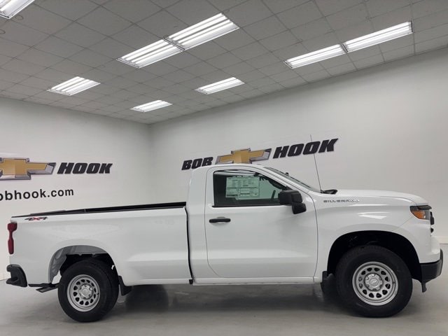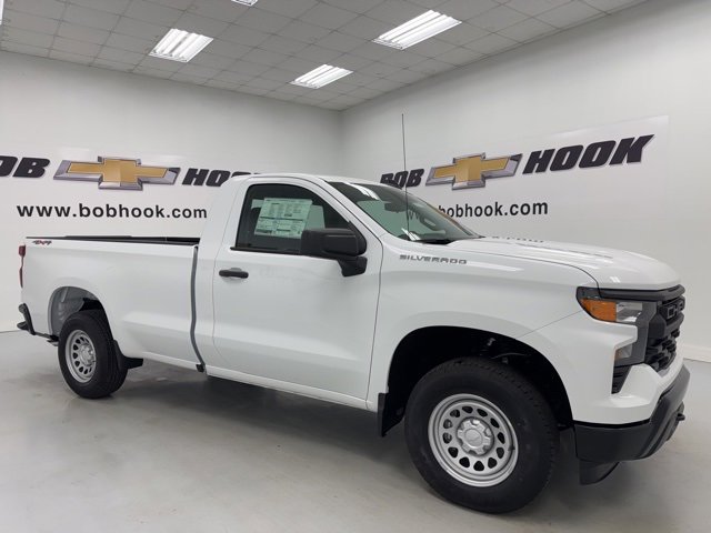 This 2026 Chevrolet Silverado 1500 comes equipped with Preferred Equipment Group 1WT (3.5 Monochromatic Display Driver Info Center, 4-Way Manual Driver Seat Adjuster, 40/20/40 Front Split Bench Seat, Black (Semi-Gloss) Front Bumper, Black (Semi-Gloss) Rear Bumper, Bluetooth® For Phone, Electronic Cruise Control, Front Frame-Mounted Black Recovery Hooks, HD Rear Vision Camera, Heated Power-Adjustable Outside Mirrors, Locking Tailgate, Manual Tilt Wheel Steering Column, OnStar Services Capable, Remote Keyless Entry, Rubberized-Vinyl Floor Covering, SiriusXM Delete, Solar Absorbing Tinted Glass, Standard Tailgate, Teen Driver, Tire Pressure Monitoring System, Vinyl Seat Trim, Wheels: 17 x 8 Ultra Silver Painted Steel, and Wi-Fi Hot Spot Capable), Standard Suspension Package, Trailering Package (Hitch Guidance), 10-Speed Automatic, 4WD, Jet Black Vinyl, 170 Amp Alternator, 2 Speakers, 2-Speaker Audio System, 220 Amp Alternator, 3.23 Rear Axle Ratio, 3.42 Rear Axle Ratio, 4-Wheel Disc Brakes, ABS brakes, Air Conditioning, Apple CarPlay/Android Auto, Auto High-beam Headlights, Auto-Locking Rear Differential, Automatic Emergency Braking, Auxiliary External Transmission Oil Cooler, Brake assist, Compass, Delay-off headlights, Driver door bin, Dual front impact airbags, Dual front side impact airbags, Electronic Stability Control, Emergency communication system: OnStar, External Engine Oil Cooler, Following Distance Indicator, Forward Collision Alert, Front anti-roll bar, Front Center Armrest w/Storage, Front Pedestrian Braking, Front reading lights, Front wheel independent suspension, Fully automatic headlights, Heated door mirrors, Illuminated entry, Low tire pressure warning, Occupant sensing airbag, Outside temperature display, Overhead airbag, Overhead console, Panic alarm, Passenger door bin, Passenger vanity mirror, Power door mirrors, Power steering, Power windows, Premium audio system: Chevrolet Infotainment 3, Radio data system, Radio: Chevrolet Infotainment 3 System, Rear reading lights, Rear step bumper, Remote keyless entry, Speed control, Speed-sensing steering, Tachometer, Tilt steering wheel, Traction control, Trip computer, Variably intermittent wipers, and Voltmeter. Contact our Internet team for more information or to schedule your test drive. Price includes Chevrolet rebate. Price does not include Taxes, Tags, License, & Fees. See dealer for details.$1500 - Chevrolet Bonus Cash. Exp. 03/02/2026 $3250 - Chevrolet Consumer Cash Program. Exp. 03/02/2026