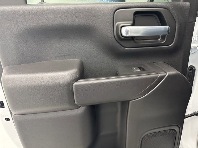 Inside the cab, you'll find a rugged and easy-to-maintain interior with Jet Black vinyl seating, a 40/20/40 front split-bench with lockable storage, rubberized vinyl flooring, air conditioning, and a 120-volt interior power outlet. The Chevrolet Infotainment 3 system with Apple CarPlay and Android Auto keeps you connected while on the road or between job sites.