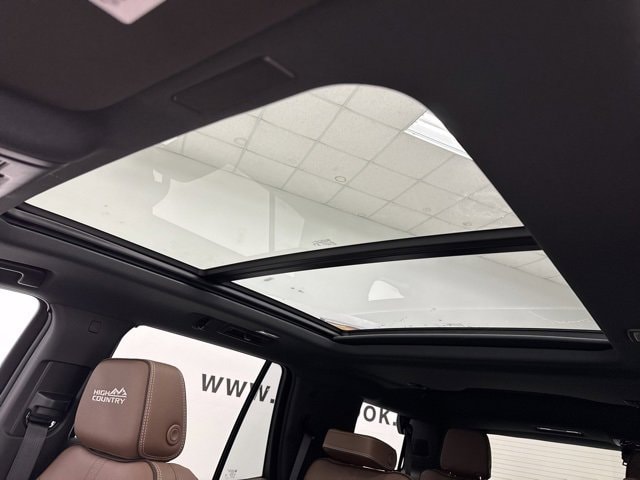 Inside, the High Country cabin is meticulously crafted with luxury and technology in mind. Premium highlights include heated and ventilated front seats, heated second-row outboard seats, a heated steering wheel, power-adjustable memory seating, and power-release second-row bucket seats for effortless access to the power-folding third row. The interior is further enhanced by bright door sill plates, a power tilt and telescoping steering column, and refined Mocha accents that elevate the driving experience.