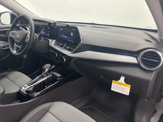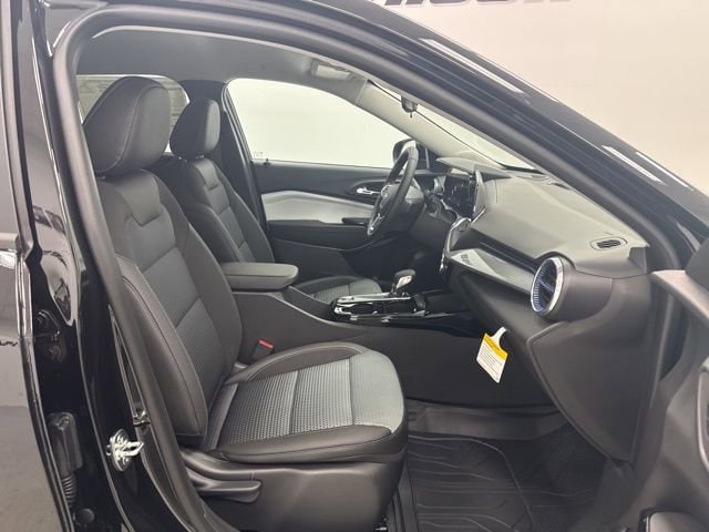 Inside, the cabin is thoughtfully designed with comfort and convenience in mind. The Cloth/Evotex seating surfaces provide durability and a premium feel, while the LT Convenience Package adds excellent upgrades including Heated Driver and Front Passenger Seats, a Heated Steering Wheel, Heated Power-Adjustable Outside Mirrors, Keyless Open on the Front Doors, and a Wrapped Steering Wheel. These features make the Trax comfortable and easy to enjoy in every season.