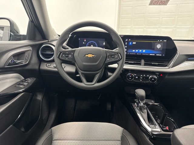 This 2026 Chevrolet Trax comes equipped with 2-Way Adjustable Front Head Restraints, 3.50 Final Drive Axle Ratio, 4-Way Manual Front Passenger Seat Adjuster, 4-Wheel Disc Brakes, 6 Speakers, 6-Speaker Audio System Feature, 6-Way Manual Driver Seat Adjuster, ABS brakes, Air Conditioning, Alloy wheels, AM/FM radio: SiriusXM, Auto High-beam Headlights, Automatic temperature control, Brake assist, Bumpers: body-color, Cloth/Evotex Seat Trim, Compass, Delay-off headlights, Driver door bin, Driver vanity mirror, Dual front impact airbags, Dual front side impact airbags, Electronic Stability Control, Emergency communication system: OnStar One Essentials, Exterior Parking Camera Rear, Front anti-roll bar, Front Bucket Seats, Front Center Armrest, Front reading lights, Front wheel independent suspension, Fully automatic headlights, Illuminated entry, Low tire pressure warning, Occupant sensing airbag, Outside temperature display, Overhead airbag, Overhead console, Panic alarm, Passenger door bin, Passenger vanity mirror, Power door mirrors, Power steering, Power windows, Premium audio system: Chevrolet Infotainment 3, Radio data system, Radio: AM/FM Stereo Audio System, Rear window defroster, Rear window wiper, Remote keyless entry, Security system, SiriusXM Trial Subscription, Speed control, Split folding rear seat, Spoiler, Steering wheel mounted audio controls, Tachometer, Telescoping steering wheel, Tilt steering wheel, Traction control, Trip computer, Variably intermittent wipers, Wheels: 17 Inch Gray-Painted Machined Aluminum Alloy, and Wireless Apple CarPlay/Wireless Android Auto.