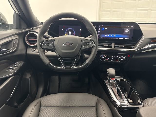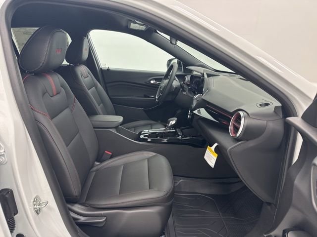 This 2026 Chevrolet Trax comes equipped with 2-Way Adjustable Front Head Restraints, 2-Way Power Driver Lumbar Seat Adjuster, 3 Years OnStar One, 3.50 Final Drive Axle Ratio, 4-Way Manual Front Passenger Seat Adjuster, 4-Wheel Disc Brakes, 6 Speakers, 6-Speaker Audio System Feature, 8-Way Power Driver Seat Adjuster, ABS brakes, Air Conditioning, Alloy wheels, AM/FM radio: SiriusXM, Auto High-beam Headlights, Automatic temperature control, Brake assist, Bumpers: body-color, Compass, Delay-off headlights, Driver door bin, Driver vanity mirror, Dual front impact airbags, Dual front side impact airbags, Electronic Stability Control, Emergency communication system: OnStar One Essentials, Evotex Seat Trim, Exterior Parking Camera Rear, Front and Rear Jet Black All-Weather Floor Liners, Front anti-roll bar, Front Bucket Seats, Front Center Armrest, Front reading lights, Front wheel independent suspension, Fully automatic headlights, Heated door mirrors, Heated Driver and Front Passenger Seats, Heated front seats, Heated steering wheel, Illuminated entry, Leather steering wheel, Low tire pressure warning, Occupant sensing airbag, Outside temperature display, Overhead airbag, Overhead console, Panic alarm, Passenger door bin, Passenger vanity mirror, Power door mirrors, Power driver seat, Power steering, Power windows, Premium audio system: Chevrolet Infotainment 3, Radio data system, Radio: AM/FM Stereo Audio System, Rear window defroster, Rear window wiper, Remote keyless entry, Security system, SiriusXM Trial Subscription, Speed control, Split folding rear seat, Spoiler, Sport steering wheel, Steering wheel mounted audio controls, Tachometer, Telescoping steering wheel, Tilt steering wheel, Traction control, Trip computer, Variably intermittent wipers, Wheels: 19 Black-Painted Machined Aluminum, and Wireless Apple CarPlay/Wireless Android Auto.