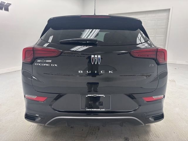This 2024 Buick Encore GX comes equipped with Preferred Equipment Group 1SD, 2 USB Ports (1 Type-A, 1 Type-C), 4-Way Manual Passenger Seat Adjuster, 4-Wheel Disc Brakes, 5.45 Final Drive Axle Ratio, 6 Speakers, 6-Way Manual Driver Seat Adjuster, ABS brakes, Air Conditioning, Alloy wheels, AM/FM radio: SiriusXM, Auto High-beam Headlights, Automatic temperature control, Brake assist, Bumpers: body-color, Compass, Delay-off headlights, Deleted 3 Years of OnStar Remote Access, Driver door bin, Driver vanity mirror, Dual front impact airbags, Dual front side impact airbags, Electronic Stability Control, Emergency communication system: OnStar and Buick connected services capable, Enhanced Performance 6-Speaker System, Front anti-roll bar, Front Bucket Seats, Front Center Armrest, Front reading lights, Front wheel independent suspension, Fully automatic headlights, Heated door mirrors, Illuminated entry, Knee airbag, Leatherette Seat Trim, Low tire pressure warning, Occupant sensing airbag, Outside temperature display, Overhead airbag, Overhead console, Panic alarm, Passenger door bin, Passenger vanity mirror, Power door mirrors, Power steering, Power windows, Radio data system, Radio: Audio System w/AM/FM, Rear reading lights, Rear side impact airbag, Rear window defroster, Rear window wiper, Remote keyless entry, Ride & Handling Suspension, Security system, SiriusXM, Speed control, Speed-sensing steering, Split folding rear seat, Spoiler, Sport steering wheel, Steering wheel mounted audio controls, Tachometer, Telescoping steering wheel, Tilt steering wheel, Traction control, Trip computer, Variably intermittent wipers, Wheels: 18 Gloss Black Aluminum, and Wireless Apple CarPlay/Wireless Android Auto.