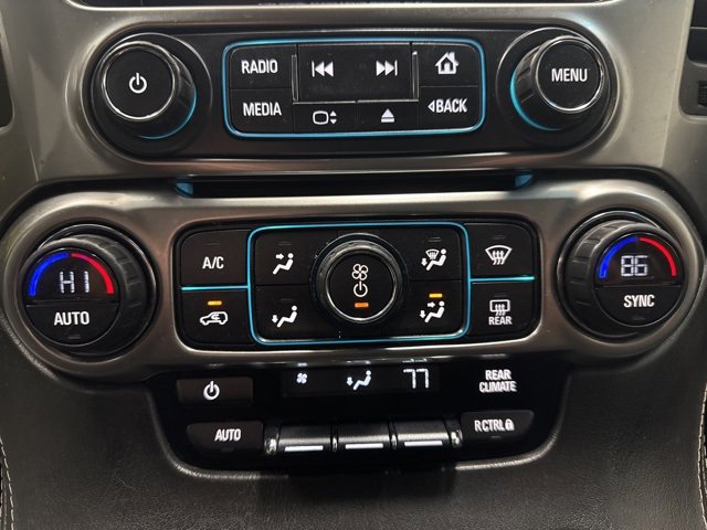 This 2016 Chevrolet Tahoe comes equipped with Max Trailering Package (2-Speed Active Electronic AutoTrac Transfer Case and Integrated Trailer Brake Controller), Preferred Equipment Group 1LS (1st & 2nd Row Color-Keyed Carpeted Floor Mats, 2nd Row 60/40 Split-Folding Manual Bench, 3rd Row Manual 60/40 Split-Folding Fold Flat Bench, 4-Wheel Antilock Disc Brakes, Black Assist Steps, Color-Keyed Carpeting Floor Covering, Driver Inboard & Front Passenger Airbags, Electronic Cruise Control w/Set & Resume Speed, Enhanced Driver Instrument Information Display, Extended-Range Remote Keyless Entry, Floor Console, Leather-Wrapped Steering Wheel, OnStar Basic Plan For 5 Years, Rear Park Assist w/Audible Warning, Roof-Mounted Luggage Rack Side Rails, and SiriusXM Satellite Radio), Premium Smooth Ride Suspension Package, Standard Suspension Package, 4WD, Black Cloth, 18 x 8.5 Aluminum Wheels, 3rd row seats: split-bench, 4-Wheel Disc Brakes, 6 Speakers, 6-Speaker Audio System Feature, 6-Way Power Front Passenger Seat Adjuster, ABS brakes, Air Conditioning, Alloy wheels, AM/FM radio: SiriusXM, Apple CarPlay, Automatic temperature control, Brake assist, Bumpers: body-color, CD player, Compass, Delay-off headlights, Driver door bin, Driver vanity mirror, Dual front impact airbags, Dual front side impact airbags, Electronic Stability Control, Emergency communication system: OnStar, Exterior Parking Camera Rear, Front anti-roll bar, Front Bucket Seats, Front Center Armrest, Front dual zone A/C, Front High-Back Reclining Bucket Seats, Front reading lights, Front wheel independent suspension, Fully automatic headlights, Heated door mirrors, Illuminated entry, Low tire pressure warning, Occupant sensing airbag, Outside temperature display, Overhead airbag, Overhead console, Panic alarm, Passenger door bin, Passenger vanity mirror, Power door mirrors, Power driver seat, Power passenger seat, Power steering, Power windows, Premium audio system: Chevrolet MyLink, Premium Cloth Seat Trim, Radio: Chevrolet MyLink AM/FM Stereo, Rain sensing wipers, Rear air conditioning, Rear anti-roll bar, Rear reading lights, Rear seat center armrest, Rear window defroster, Rear window wiper, Remote keyless entry, Roof rack: rails only, Security system, Single-Slot CD/MP3 Player, Speed control, Speed-sensing steering, Split folding rear seat, Spoiler, Steering wheel mounted audio controls, Tachometer, Tilt steering wheel, Traction control, Trip computer, Variably intermittent wipers, and Voltmeter.