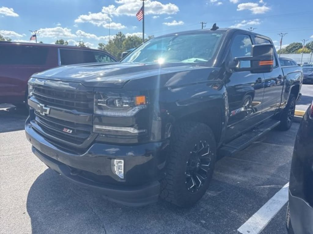 This 2018 Chevrolet Silverado 1500 comes equipped with Off-Road Suspension Package (Front Frame-Mounted Black Recovery Hooks and Hill Descent Control), Preferred Equipment Group 2LZ (110-Volt AC Power Outlet, 150 Amp Alternator, 4.2 Diagonal Color Display Driver Info Center, 6 Speaker Audio System, Auto-Dimming Inside Rear-View Mirror, Auxiliary External Transmission Oil Cooler, Bluetooth® For Phone, Body Color Rear Bumper w/Cornersteps, Body-Color Grille Surround, Body-Color Headlamp Bezels, Chevrolet Connected Access, Chevrolet w/4G LTE, Chrome Bodyside Moldings, Chrome Cap Power-Adjustable Heated Outside Mirrors, Chrome Door Handles, Chrome Mirror Caps, Color-Keyed Carpeting w/Rubberized Vinyl Floor Mats, Deep-Tinted Glass, Driver & Front Passenger Illuminated Vanity Mirrors, Dual-Zone Automatic Climate Control, Electric Rear-Window Defogger, EZ Lift & Lower Tailgate, Front Body-Color Bumper, Front Chrome Bumper, HD Radio, Heavy-Duty Rear Locking Differential, Leather Wrapped Steering Wheel w/Cruise Controls, LED Taillamps w/Signature, Manual Tilt/Telescoping Steering Column, OnStar & Chevrolet Connected Services Capable, Power Sliding Rear Window, Power Windows w/Driver Express Up, Rear 60/40 Folding Bench Seat (Folds Up), Rear Chrome Bumper, Rear Wheelhouse Liners, Remote Keyless Entry, Remote Locking Tailgate, Remote Vehicle Starter System, Single Slot CD/MP3 Player, Spray-On Pickup Box Bed Liner, Steering Wheel Audio Controls, Theft Deterrent System (Unauthorized Entry), Thin Profile LED Fog Lamps, and Universal Home Remote), Trailering Package, 8-Speed Automatic with Overdrive, 4WD, Black Leather, 3.42 Rear Axle Ratio, 4-Wheel Disc Brakes, 40/20/40 Front Split Bench Seat, 6 Speakers, 6 Rectangular Black Tubular Assist Steps (LPO), ABS brakes, Air Conditioning, Alloy wheels, AM/FM radio: SiriusXM, Auto-dimming door mirrors, Auto-dimming Rear-View mirror, Automatic temperature control, Black Door Handles, Black Painted Mirror Caps, Bodyside moldings, Brake assist, Bumpers: body-color, CD player, Compass, Delay-off headlights, Driver door bin, Driver vanity mirror, Dual front impact airbags, Dual front side impact airbags, Electronic Stability Control, Exterior Parking Camera Rear, Front & Rear Black Bow Tie, Front anti-roll bar, Front Center Armrest w/Storage, Front dual zone A/C, Front fog lights, Front reading lights, Front wheel independent suspension, Fully automatic headlights, Garage door transmitter, Heated door mirrors, Heated Driver & Front Passenger Seats, Heated front seats, Illuminated entry, Integrated Trailer Brake Controller, Leather Appointed Seat Trim, Low tire pressure warning, Memory seat, Occupant sensing airbag, Outside temperature display, Overhead airbag, Overhead console, Panic alarm, Passenger door bin, Passenger vanity mirror, Power door mirrors, Power driver seat, Power passenger seat, Power steering, Power windows, Premium audio system: Chevrolet MyLink, Radio data system, Radio: AM/FM 8 Diagonal Color Touch Screen, Rear reading lights, Rear seat center armrest, Rear step bumper, Rear window defroster, Remote keyless entry, Security system, SiriusXM Satellite Radio, Speed control, Speed-sensing steering, Split folding rear seat, Steering wheel mounted audio controls, Tachometer, Telescoping steering wheel, Tilt steering wheel, Traction control, Trip computer, Turn signal indicator mirrors, Ultrasonic Front & Rear Park Assist, Variably intermittent wipers, Voltmeter, and Wheels: 18 x 8.5 Bright Machined Aluminum.