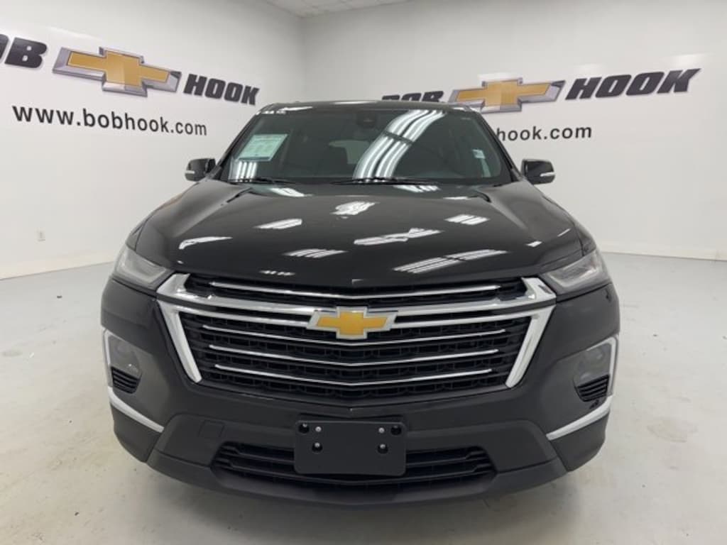 This 2023 Chevrolet Traverse comes equipped with Floor Liner Package (LPO) (1st & 2nd Row All-Weather Floor Liner (LPO), 3rd Row All-Weather Floor Liner (LPO), and Integrated Cargo Liner (LPO)), Front License Plate Bracket Mounting Package, Preferred Equipment Group 1LT (Heated Driver & Front Passenger Seats), Trailering Equipment (Heavy-Duty Cooling System, Hitch Guidance w/Hitch View, and Trailering Assist Guidelines), AWD, 2-Way Manual Front Passenger Seat Adjuster, 3.49 Axle Ratio, 3rd row seats: split-bench, 4-Wheel Disc Brakes, 6 Speakers, 6-Speaker Audio System Feature, 8-Way Power Driver Seat Adjuster, ABS brakes, Air Conditioning, Alloy wheels, AM/FM radio: SiriusXM, Apple CarPlay/Android Auto, Auto High-beam Headlights, Automatic temperature control, Black Roof Rails, Brake assist, Bumpers: body-color, Compass, Delay-off headlights, Deleted 3 Years of Remote Access, Driver door bin, Driver vanity mirror, Dual front impact airbags, Dual front side impact airbags, Electronic Stability Control, Emergency communication system, Exterior Parking Camera Rear, Four wheel independent suspension, Front anti-roll bar, Front Bucket Seats, Front Center Armrest, Front dual zone A/C, Front reading lights, Fully automatic headlights, Garage door transmitter, Heated door mirrors, Heated front seats, Illuminated entry, Leather steering wheel, Low tire pressure warning, Not Equipped w/Rear Park Assist (060), Occupant sensing airbag, Outside temperature display, Overhead airbag, Overhead console, Panic alarm, Passenger door bin, Passenger vanity mirror, Power door mirrors, Power Driver Lumbar Control, Power driver seat, Power Liftgate, Power steering, Power windows, Premium Cloth Seat Trim, Radio data system, Radio: Chevrolet Infotainment 3 Plus System, Rear air conditioning, Rear anti-roll bar, Rear reading lights, Rear window defroster, Rear window wiper, Remote keyless entry, Security system, SiriusXM w/360L, Speed control, Speed-sensing steering, Spoiler, Steering wheel mounted audio controls, Tachometer, Telescoping steering wheel, Tilt steering wheel, Traction control, Trip computer, Turn signal indicator mirrors, Variably intermittent wipers, Voltmeter, and Wheels: 18 Bright Silver-Painted Aluminum.