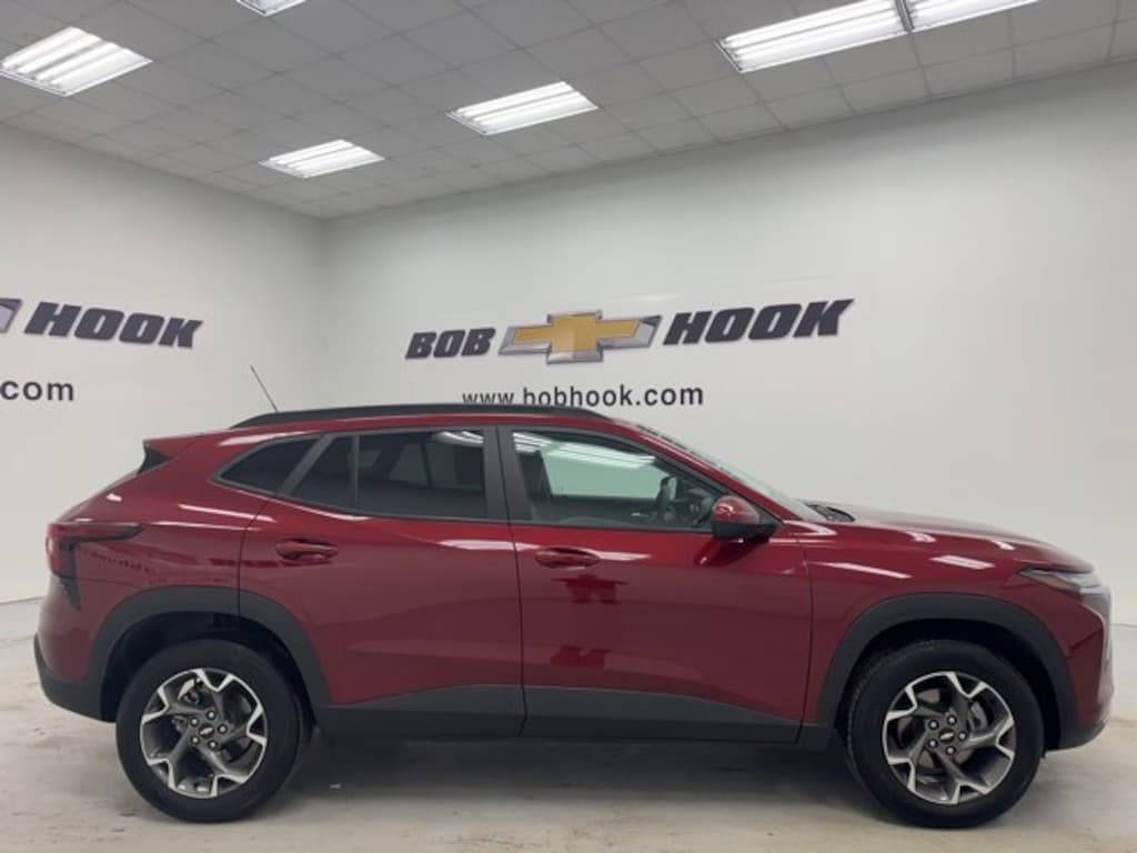 Crimson Metallic 2024 Chevrolet Trax LT FWD 6-Speed Automatic 1.2L Ecotec Turbo DOHC DI w/VVTOdometer is 2417 miles below market average! 28/32 City/Highway MPGContact our Internet Department for pricing and availability. We want to earn your business! Bob Hook was voted Best of Louisville for Auto Service, because customer satisfaction is our #1 Goal. . Disclaimer: Prices are net of any and all rebates.This 2024 Chevrolet Trax comes equipped with Preferred Equipment Group 1LT, 2-Way Adjustable Front Head Restraints, 3.50 Final Drive Axle Ratio, 4-Way Manual Front Passenger Seat Adjuster, 4-Wheel Disc Brakes, 6 Speakers, 6-Speaker Audio System Feature, 6-Way Manual Driver Seat Adjuster, ABS brakes, Air Conditioning, Alloy wheels, AM/FM radio: SiriusXM, Auto High-beam Headlights, Automatic temperature control, Brake assist, Bumpers: body-color, Cloth/Evotex Seat Trim, Compass, Delay-off headlights, Deleted 3 Years of OnStar Remote Access, Driver door bin, Driver vanity mirror, Dual front impact airbags, Dual front side impact airbags, Electronic Stability Control, Emergency communication system: OnStar and Chevrolet connected services capable, Exterior Parking Camera Rear, Front anti-roll bar, Front Bucket Seats, Front Center Armrest, Front reading lights, Front wheel independent suspension, Fully automatic headlights, Illuminated entry, Low tire pressure warning, Occupant sensing airbag, Outside temperature display, Overhead airbag, Overhead console, Panic alarm, Passenger door bin, Passenger vanity mirror, Power door mirrors, Power steering, Power windows, Premium audio system: Chevrolet Infotainment 3, Radio data system, Radio: Audio System w/AM/FM, Rear window defroster, Rear window wiper, Remote keyless entry, Security system, SiriusXM, Speed control, Split folding rear seat, Spoiler, Steering wheel mounted audio controls, Tachometer, Telescoping steering wheel, Tilt steering wheel, Traction control, Trip computer, Variably intermittent wipers, and Wheels: 17 Gray-Painted Machined Aluminum.