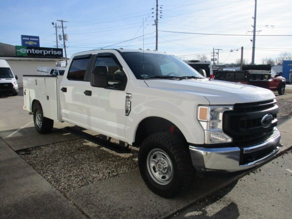 2021 Ford F-250SD XL Crew Cab 4X4 with a Service body. This F-250SD is powered by the reliable, hard working 6.2L V8 and 6-Speed Automatic.This 2021 Ford F-250SD comes equipped with GVWR: 10,000 lb Payload Package, Order Code 600A, Power Equipment Group (Advanced Security Pack, Power Front & Rear Seat Windows, Power Locks, Power Tailgate Lock, Remote Keyless Entry, and Trailer Tow Mirrors w/Power Heated Glass), Snow Plow Prep Package, XL Value Package (Bright Chrome Hub Covers & Center Ornaments, Chrome Front Bumper, Chrome Rear Step Bumper, and Steering Wheel-Mounted Cruise Control), 4WD, 17 Argent Painted Steel Wheels, 3.73 Axle Ratio, 4 Speakers, 4-Wheel Disc Brakes, ABS brakes, Air Conditioning, AM/FM radio, AM/FM Stereo w/MP3 Player, Brake assist, Compass, Delay-off headlights, Dual front impact airbags, Dual front side impact airbags, Electronic Stability Control, Electronic-Locking w/3.73 Axle Ratio, Emergency communication system, Exterior Parking Camera Rear, Front anti-roll bar, Front Center Armrest, Front reading lights, Fully automatic headlights, HD Vinyl 40/20/40 Split Bench Seat, LED Roof Clearance Lights, Low tire pressure warning, Outside temperature display, Overhead airbag, Overhead console, Passenger vanity mirror, Platform Running Boards, Power steering, Rear reading lights, Rear step bumper, Split folding rear seat, Steering wheel mounted audio controls, SYNC Communications & Entertainment System, Tachometer, Telescoping steering wheel, Tilt steering wheel, Traction control, Trailer Brake Controller, Trip computer, Upfitter Switches (6), and Variably intermittent wipers.