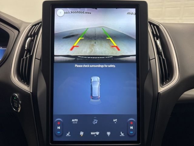 This 2024 Ford Edge comes equipped with AWD, 3.80 Axle Ratio, 4-Wheel Disc Brakes, 6 Speakers, ABS brakes, ActiveX Trimmed Heated Bucket Seats, Air Conditioning, Alloy wheels, AM/FM radio: SiriusXM with 360L, AM/FM Stereo, Auto High-beam Headlights, Auto-dimming Rear-View mirror, Automatic temperature control, Brake assist, Bumpers: body-color, Compass, Delay-off headlights, Driver door bin, Driver vanity mirror, Dual front impact airbags, Dual front side impact airbags, Electronic Stability Control, Emergency communication system: SYNC 4 911 Assist, FordPass Connect, Four wheel independent suspension, Front anti-roll bar, Front Bucket Seats, Front Center Armrest w/Storage, Front dual zone A/C, Front reading lights, Fully automatic headlights, Heated door mirrors, Heated front seats, Illuminated entry, Knee airbag, Leather steering wheel, Low tire pressure warning, Occupant sensing airbag, Outside temperature display, Overhead airbag, Overhead console, Panic alarm, Passenger door bin, Passenger vanity mirror, Power door mirrors, Power driver seat, Power Liftgate, Power passenger seat, Power steering, Power windows, Rear anti-roll bar, Rear Parking Sensors, Rear reading lights, Rear seat center armrest, Rear window defroster, Rear window wiper, Remote keyless entry, SiriusXM w/360L, Speed control, Speed-Sensitive Wipers, Split folding rear seat, Spoiler, Steering wheel mounted audio controls, SYNC 4A w/Enhanced Voice Recognition, Tachometer, Telescoping steering wheel, Tilt steering wheel, Traction control, Trip computer, and Variably intermittent wipers.