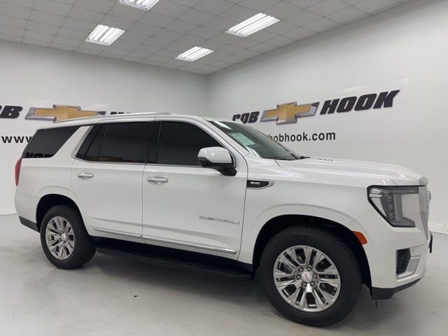 White Frost Tricoat 2021 GMC Yukon Denali 4WD 10-Speed Automatic with Overdrive EcoTec3 6.2L V84WD.Odometer is 1474 miles below market average!Bob Hook Chevrolet proudly serves Louisville and surrounding communities including Mt. Washington, Shepherdsville, Taylorsville, Bardstown, LaGrange, Crestwood, Shelbyville, Prospect, Middletown, St. Matthews, New Albany, Jeffersonville, Clarksville, Sellersburg, and all of Southern Indiana. Experience the Bob Hook Advantage where customer satisfaction is always our #1 goal!This 2021 GMC Yukon comes equipped with License Plate Front Mounting Package, Preferred Equipment Group 5SA (12-Way Power Seat Adjusters, 15 Diagonal Multi-Color Head-Up Display, 2 Presets For Outside Rearview Mirrors, 3rd Row 60/40 Power-Folding Split-Bench Seat, Bright Front & Rear Door Sill Plates, Chrome Door Handles w/Body-Color Strip, Dual Exhaust System, Galvano Bodyside Moldings, Hands-Free Power Programmable Rear Liftgate, HD Surround Vision, Heated & Ventilated Driver & Front Passenger Seats, Heated 2nd Row Outboard Position Seats, Heated Automatic Steering Wheel, Heated Driver & Front Passenger Seats, Hill Descent Control, Inside Rear-View Auto-Dimming Mirror, Outside Heated Power-Adjustable Mirrors, Power Release 2nd Row Bucket Seats, Power Tilt & Telescopic Steering Column, Rear Pedestrian Alert, Safety Alert Seat, and Universal Home Remote), 4WD, 14 Speakers, 3.23 Rear Axle Ratio, 3rd row seats: split-bench, 4-Wheel Disc Brakes, ABS brakes, Adaptive suspension, Air Conditioning, Alloy wheels, AM/FM radio: SiriusXM with 360L, Apple CarPlay/Android Auto, Auto High-beam Headlights, Auto-dimming door mirrors, Auto-dimming Rear-View mirror, Auto-leveling suspension, Automatic Emergency Braking, Automatic temperature control, Bodyside moldings, Bose 14-Speaker Surround w/CenterPoint, Brake assist, Bumpers: body-color, Compass, Delay-off headlights, Driver door bin, Driver vanity mirror, Dual front impact airbags, Dual front side impact airbags, Electronic Stability Control, Emergency communication system: OnStar and GMC connected services capable, Following Distance Indicator, Forward Collision Alert, Four wheel independent suspension, Front & Rear Park Assist, Front anti-roll bar, Front Bucket Seats, Front Center Armrest, Front dual zone A/C, Front fog lights, Front Pedestrian Braking, Front reading lights, Fully automatic headlights, Garage door transmitter, HD Radio, Heads-Up Display, Heated door mirrors, Heated front seats, Heated rear seats, Heated steering wheel, Illuminated entry, IntelliBeam Automatic High Beam On/Off, Lane Change Alert w/Side Blind Zone Alert, Lane Keep Assist w/Lane Departure Warning, Leather steering wheel, Low tire pressure warning, Magnetic Ride Control Suspension, Memory seat, Navigation System, Occupant sensing airbag, Outside temperature display, Overhead airbag, Overhead console, Panic alarm, Passenger door bin, Passenger vanity mirror, Perforated Leather Seating Surfaces, Power door mirrors, Power driver seat, Power Liftgate, Power passenger seat, Power steering, Power windows, Radio: AM/FM/SiriusXM w/Navigation, Rain sensing wipers, Rear air conditioning, Rear anti-roll bar, Rear Cross Traffic Alert, Rear reading lights, Rear window defroster, Rear window wiper, Remote keyless entry, Roof rack: rails only, Security system, SiriusXM w/360L, Speed control, Speed-sensing steering, Split folding rear seat, Spoiler, Steering wheel memory, Steering wheel mounted audio controls, Tachometer, Telescoping steering wheel, Tilt steering wheel, Traction control, Trip computer, Turn signal indicator mirrors, Variably intermittent wipers, Ventilated front seats, Voltmeter, and Wheels: 20 x 9 6-Spoke Polished Aluminum.