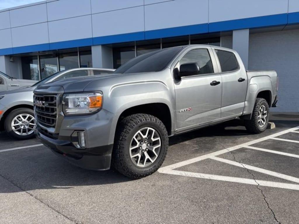 Satin Steel Metallic 2022 GMC Canyon AT4 w/Leather 4WD 8-Speed Automatic V64WD.Odometer is 2758 miles below market average!Contact our Internet Department for pricing and availability. We want to earn your business! Bob Hook was voted Best of Louisville for Auto Service, because customer satisfaction is our #1 Goal. . Disclaimer: Prices are net of any and all rebates.This 2022 GMC Canyon comes equipped with Performance Skid Plate Package (LPO), Preferred Equipment Group 4SB (Hitch Guidance and Tow/Haul Mode), 4WD, 1st & 2nd Rows All-Weather Floor Liner (LPO), 2 USB Data Ports, 3 Years of OnStar & Connected Services Plan (DISC), 3.42 Rear Axle Ratio, 4-Way Power Front Passenger Seat Adjuster, 4-Wheel Disc Brakes, 6 Speakers, 6-Speaker Audio System Feature, ABS brakes, Air Conditioning, Alloy wheels, AM/FM radio: SiriusXM with 360L, Apple CarPlay/Android Auto, Auto-dimming Rear-View mirror, Automatic temperature control, Bose Premium 7-Speaker Audio System Feature, Bumpers: body-color, Compass, Delay-off headlights, Driver 6-Way Power Seat Adjuster, Driver door bin, Driver Instrument Information Enhanced Display, Driver vanity mirror, Dual front impact airbags, Dual front side impact airbags, Electronic Stability Control, Emergency communication system: OnStar and GMC Connected Services capable, Exterior Parking Camera Rear, Front anti-roll bar, Front Bucket Seats, Front Center Armrest, Front fog lights, Front License Plate Kit, Front reading lights, Front wheel independent suspension, Fully automatic headlights, GMC Black Chrome Exhaust Tip (LPO), HD Radio, Heated door mirrors, Heated Steering Wheel, Heated steering wheel, Illuminated entry, Integrated Trailer Brake Controller, Leather-Appointed Seat Trim, Low tire pressure warning, Not Equipped w/Rear Park Assist, Occupant sensing airbag, Outside temperature display, Overhead airbag, Overhead console, Panic alarm, Passenger door bin, Passenger vanity mirror, Power door mirrors, Power Driver Lumbar Control Seat Adjuster, Power driver seat, Power Passenger Lumbar Control Seat Adjuster, Power passenger seat, Power steering, Power windows, Premium audio system: GMC Infotainment System, Radio data system, Radio: AM/FM w/8 Diagonal Multi-Touch Display, Radio: AM/FM w/8 Diagonal Multi-Touch Display Nav, Rear reading lights, Rear seat center armrest, Rear step bumper, Rear window defroster, Remote keyless entry, Security system, SiriusXM Radio, Speed control, Speed-sensing steering, Steering wheel mounted audio controls, Tachometer, Telescoping steering wheel, Tilt steering wheel, Traction control, Trip computer, Variably intermittent wipers, Wheels: 17 x 8 Dark Argent Metallic, and Wireless Charging for Compatible Cell Phones.
