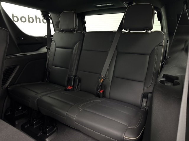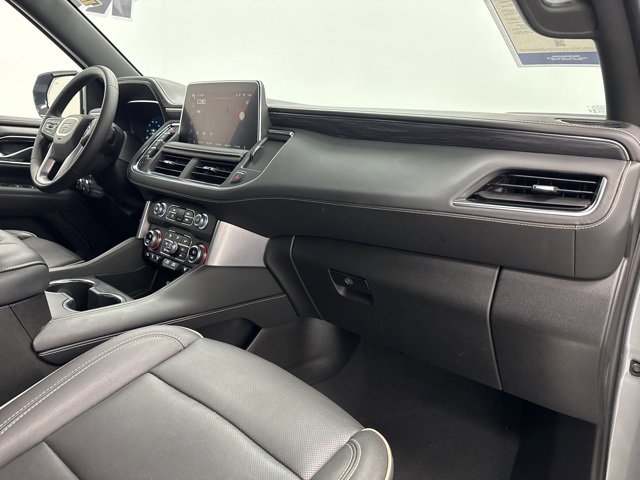 This 2024 GMC Yukon comes equipped with Preferred Equipment Group 4SA (12-Way Power Seat Adjusters, 2 Presets For Power Driver Seat, Bose 9-Speaker Stereo Audio System Feature, Bright Chrome Bodyside Moldings, Bright Front & Rear Door Sill Plates, Chrome Door Handles w/Body-Color Strip, Hands-Free Power Programmable Rear Liftgate, Heated Driver & Front Passenger Seats, Inside Rear-View Auto-Dimming Mirror, Perforated Heated & Ventilated Dr & Frt Pass Seats, Safety Alert Seat, Universal Home Remote, and Wireless Charging), 4WD, 3.23 Rear Axle Ratio, 3rd row seats: split-bench, 4-Wheel Disc Brakes, 9 Speakers, ABS brakes, Air Conditioning, Alloy wheels, AM/FM radio: SiriusXM with 360L, AM/FM Stereo, Apple CarPlay/Android Auto, Auto High-beam Headlights, Auto-dimming Rear-View mirror, Automatic Emergency Braking, Automatic temperature control, Bodyside moldings, Brake assist, Bumpers: body-color, Compass, Delay-off headlights, Deleted 3 Years of OnStar Remote Access, Driver door bin, Driver vanity mirror, Dual front impact airbags, Dual front side impact airbags, Electronic Stability Control, Emergency communication system: OnStar and GMC connected services capable, Following Distance Indicator, Forward Collision Alert, Four wheel independent suspension, Front & Rear Park Assist, Front anti-roll bar, Front Bucket Seats, Front Center Armrest, Front dual zone A/C, Front fog lights, Front Pedestrian Braking, Front reading lights, Fully automatic headlights, Garage door transmitter, Heated door mirrors, Heated front seats, Illuminated entry, IntelliBeam Automatic High Beam On/Off, Lane Change Alert w/Side Blind Zone Alert, Lane Keep Assist w/Lane Departure Warning, Low tire pressure warning, Memory seat, Navigation System, Occupant sensing airbag, Outside temperature display, Overhead airbag, Overhead console, Panic alarm, Passenger door bin, Passenger vanity mirror, Perforated Leather-Appointed Seating, Power door mirrors, Power driver seat, Power Liftgate, Power passenger seat, Power steering, Power windows, Premium Smooth Ride Suspension, Rain sensing wipers, Rear air conditioning, Rear anti-roll bar, Rear Cross Traffic Alert, Rear reading lights, Rear seat center armrest, Rear window defroster, Rear window wiper, Remote keyless entry, Roof rack: rails only, Security system, SiriusXM w/360L, Speed control, Speed-sensing steering, Split folding rear seat, Spoiler, Steering wheel mounted audio controls, Tachometer, Telescoping steering wheel, Tilt steering wheel, Traction control, Trip computer, Variably intermittent wipers, Ventilated front seats, Voltmeter, and Wheels: 20 x 9 6-Spoke Polished Aluminum.
