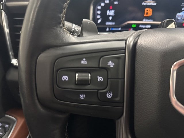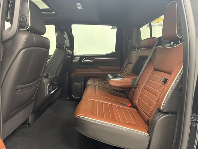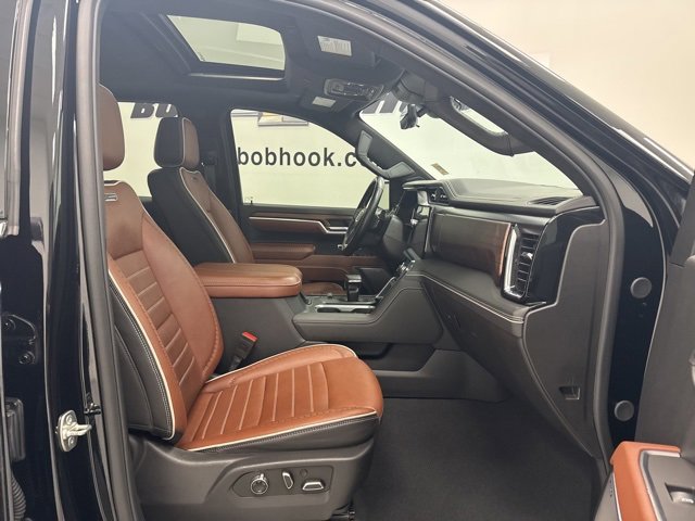 This 2025 GMC Sierra 1500 comes equipped with Preferred Equipment Group 5SB (120-Volt Bed Mounted Power Outlet, 120-Volt Interior Power Outlet, 2 Charge/Data USB Ports Inside Center Console, 2 Type-C Charge-Only Rear USB Ports, 2 USB Ports, Auto-Locking Rear Differential, Bed View Camera, Bose Premium Series w/12-Speaker System, Chrome Recovery Hooks, Color-Keyed Carpeting Floor Covering, Deep-Tinted Glass, Electric Rear-Window Defogger, Floor-Mounted Center Console, Front Rain-Sensing Wipers, HD Surround Vision, Heated 2nd Row Outboard Seats, Heated Driver & Front Outboard Passenger Seating, Heavy-Duty Air Filter, High Gloss Black Header w/Signature Denali Grille, Hill Descent Control, Hitch View, In-Vehicle Trailering System App, Integrated Trailer Brake Controller, Keyless Open & Start, LED Cargo Area Lighting, Multicolor 15 Diagonal Head-Up Display, MultiPro Tailgate Audio System by Kicker (LPO), OnStar Services Capable, Perimeter Lighting, Power Door Locks, Power Front Passenger Windows w/Express Up/Down, Power Front Windows w/Driver Express Up/Down, Power Rake & Telescoping Steering Column, Power Rear Windows w/Express Down, Power Sliding Rear Window w/Rear Defogger, Power Sunroof, Push Button Start, Rear Cross Traffic Braking, Rear Pedestrian Detection, Rear Wheelhouse Liners, Remote Vehicle Starter System, SiriusXM w/360L Trial Subscription, Spray-On Pickup Bedliner w/GMC Logo, Steering Wheel Audio Controls, Theft Deterrent System (Unauthorized Entry), Trailer Camera Provisions, Trailer Side Blind Zone Alert, Trailer Tire Pressure Monitor System, Ultrasonic Front & Rear Park Assist, Universal Home Remote, Ventilated Driver & Front Passenger Seats, Wi-Fi Hotspot Capable, and Wireless Charging), Trailering Package (Hitch Guidance), 10-Speed Automatic, 4WD, Alpine Umber Leather, 12 Speakers, 16-Way Power Driver Seat Adjuster w/Lumbar, 16-Way Power Passenger Seat Adjuster w/Lumbar, 170 Amp Alternator, 3.23 Rear Axle Ratio, 4-Wheel Disc Brakes, ABS brakes, Adaptive suspension, Air Conditioning, Alloy wheels, AM/FM radio: SiriusXM with 360L, Apple CarPlay/Android Auto, Auto High-beam Headlights, Auto-dimming door mirrors, Auto-dimming Rear-View mirror, Automatic temperature control, Body Color Wheel Arch Moldings (LPO), Brake assist, Buckle to Drive, Bumpers: body-color, Carbon Fiber Composite Bed, Compass, Delay-off headlights, Denali Premium Suspension w/Adaptive Ride Control, Driver door bin, Driver Memory, Driver vanity mirror, Dual Active Exhaust, Dual front impact airbags, Dual front side impact airbags, Electronic Stability Control, Emergency communication system: OnStar, Enhanced Automatic Emergency Braking, Following Distance Indicator, Forward Collision Alert, Front anti-roll bar, Front Bucket Seats, Front Center Armrest, Front dual zone A/C, Front fog lights, Front Pedestrian Braking, Front reading lights, Front wheel independent suspension, Full Grain Leather Seat Trim, Fully automatic headlights, Garage door transmitter, Genuine wood console insert, Genuine wood dashboard insert, Genuine wood door panel insert, Heads-Up Display, Heated door mirrors, Heated front seats, Heated rear seats, Heated steering wheel, Illuminated entry, IntelliBeam Automatic High Beam On/Off, Low tire pressure warning, Memory seat, Navigation System, Occupant sensing airbag, Outside temperature display, Overhead airbag, Overhead console, Panic alarm, Passenger door bin, Passenger vanity mirror, Power door mirrors, Power driver seat, Power moonroof, Power passenger seat, Power steering, Po