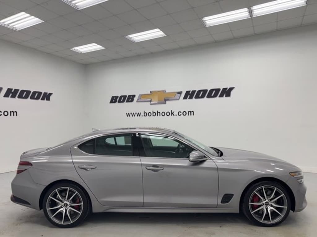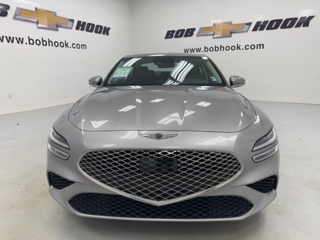 This 2025 Genesis G70 comes equipped with Option Group 01, 4-Wheel Disc Brakes, 6 Speakers, ABS brakes, Air Conditioning, Alloy wheels, AM/FM radio: SiriusXM, Android Auto & Apple CarPlay, Anti-whiplash front head restraints, Auto High-beam Headlights, Auto-dimming Rear-View mirror, Automatic temperature control, Brake assist, Bumpers: body-color, Delay-off headlights, Driver door bin, Driver vanity mirror, Dual front impact airbags, Dual front side impact airbags, Electronic Stability Control, Emergency communication system: Genesis Connected Services, Exterior Parking Camera Rear, Four wheel independent suspension, Front anti-roll bar, Front Bucket Seats, Front Center Armrest, Front dual zone A/C, Front reading lights, Fully automatic headlights, Garage door transmitter: HomeLink, Heated door mirrors, Heated front seats, Heated Multi-Adjustable Front Bucket Seats, Illuminated entry, Knee airbag, Leather steering wheel, Leatherette Seating Surfaces, Low tire pressure warning, Navigation System, Occupant sensing airbag, Outside temperature display, Overhead airbag, Overhead console, Panic alarm, Passenger door bin, Passenger vanity mirror, Power door mirrors, Power driver seat, Power passenger seat, Power steering, Power windows, Radio: AM/FM/SiriusXM/HD Audio System, Rear anti-roll bar, Rear reading lights, Rear seat center armrest, Rear side impact airbag, Rear window defroster, Remote keyless entry, Security system, Speed control, Speed-Sensitive Wipers, Split folding rear seat, Steering wheel mounted audio controls, Tachometer, Telescoping steering wheel, Traction control, Trip computer, Turn signal indicator mirrors, Variably intermittent wipers, and Wheels: 19 x 8.0J Fr & 19 x 8.5J Rr Alloy.