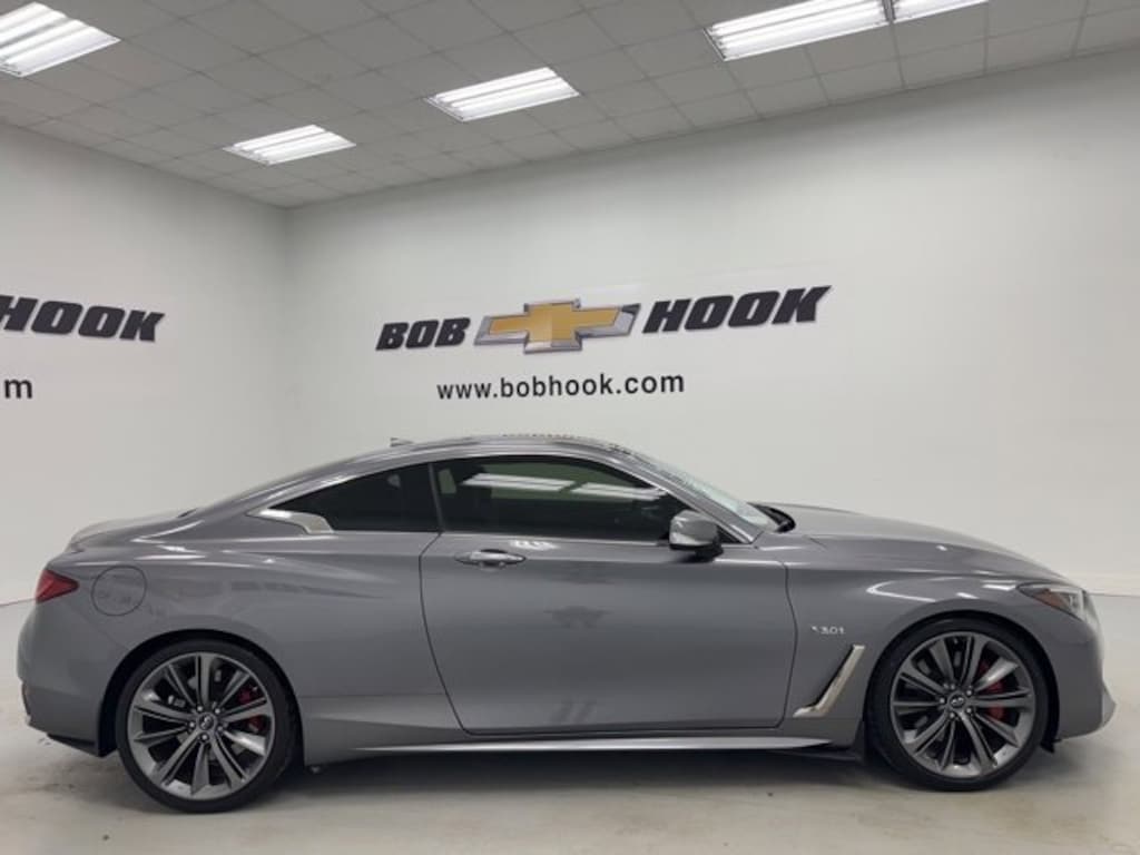 This 2018 INFINITI Q60 comes equipped with Cargo Package (Cargo Net and Trunk Protector), Sensory Package 3.0t Sport, 13 Speakers, 20 Aluminum Alloy Wheels, 4-Wheel Disc Brakes, ABS brakes, Adaptive suspension, Air Conditioning, Alloy wheels, AM/FM radio, Anti-whiplash front head restraints, Auto tilt-away steering wheel, Auto-dimming door mirrors, Auto-dimming Rear-View mirror, Automatic temperature control, Brake assist, Bumpers: body-color, CD player, Compass, Delay-off headlights, Driver door bin, Driver vanity mirror, Dual front impact airbags, Dual front side impact airbags, Electronic Stability Control, Four wheel independent suspension, Front anti-roll bar, Front Bucket Seats, Front Center Armrest, Front dual zone A/C, Front fog lights, Front reading lights, Front Sport Seats, Fully automatic headlights, Garage door transmitter: HomeLink, Heated door mirrors, Illuminated entry, Illuminated Kick Plates, INFINITI Welcome Lighting, Interior Ambient Lighting, Leather Shift Knob, Leather steering wheel, Low tire pressure warning, Memory seat, Occupant sensing airbag, Outside temperature display, Overhead airbag, Overhead console, Panic alarm, Passenger door bin, Passenger vanity mirror, Power door mirrors, Power driver seat, Power moonroof, Power passenger seat, Power steering, Power windows, Radio data system, Radio: AM/FM HD Radio, Rear anti-roll bar, Rear reading lights, Rear window defroster, Remote keyless entry, Security system, Semi-Aniline Leather-Appointed Seating, Speed control, Speed-sensing steering, Speed-Sensitive Wipers, Steering wheel memory, Steering wheel mounted audio controls, Tachometer, Telescoping steering wheel, Tilt steering wheel, Traction control, Trip computer, Turn signal indicator mirrors, and Variably intermittent wipers.