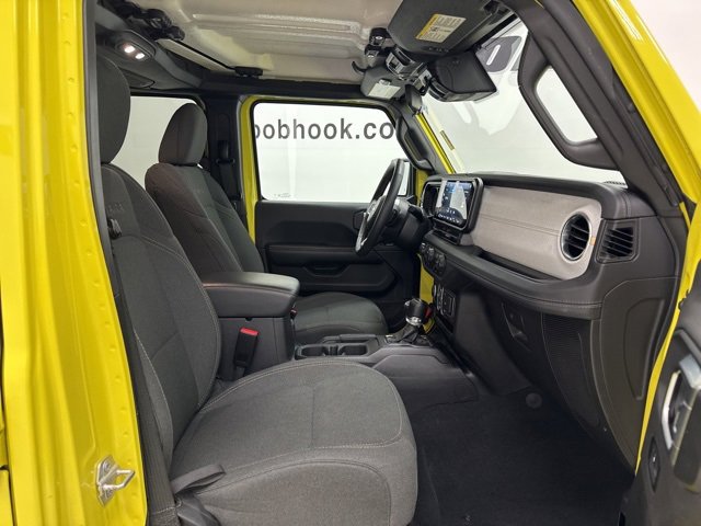 This 2024 Jeep Wrangler comes equipped with Quick Order Package 22G Sahara, 110 MPH Vehicle Max Speed Calibration, 12.3 Touchscreen Display, 3.45 Overall Top Gear Ratio, 4-Wheel Disc Brakes, 8 Speakers, ABS brakes, Air Conditioning, Alloy wheels, AM/FM radio: SiriusXM, Apple CarPlay, Apple CarPlay/Android Auto, Automatic temperature control, Aux Battery, Body Color 3-Piece Hard Top, Brake assist, Cloth Low-Back Bucket Seats, Compass, Connectivity - US/Canada, Delay-off headlights, Disassociated Touchscreen Display, Driver door bin, Driver vanity mirror, Dual front impact airbags, Dual front side impact airbags, Electronic Stability Control, Emergency communication system: Jeep Connect, Freedom Panel Storage Bag, Front anti-roll bar, Front Bucket Seats, Front Center Armrest w/Storage, Front dual zone A/C, Front fog lights, Front License Plate Bracket, Front reading lights, Fully automatic headlights, Google Android Auto, Heated door mirrors, Heated front seats, Heated steering wheel, Heavy Duty Suspension w/Gas Shocks, Illuminated entry, Integrated Center Stack Radio, Integrated roll-over protection, Integrated Voice Command w/Bluetooth, Low tire pressure warning, No Soft Top, Non-Lock Fuel Cap w/o Discriminator, Occupant sensing airbag, Outside temperature display, Overhead airbag, Panic alarm, ParkView Rear Back-Up Camera, Passenger door bin, Passenger vanity mirror, Power door mirrors, Power steering, Power windows, Radio data system, Radio: Uconnect 5 w/12.3 Display, Rear anti-roll bar, Rear reading lights, Rear Window Defroster, Rear Window Wiper/Washer, Remote keyless entry, Security system, Speed control, Split folding rear seat, Steering wheel mounted audio controls, Stop-Start Dual Battery System, Tachometer, Telescoping steering wheel, Tilt steering wheel, Traction control, Trip computer, Variably intermittent wipers, Voltmeter, and Wheels: 18 x 7.5 Machine/Painted Gray.