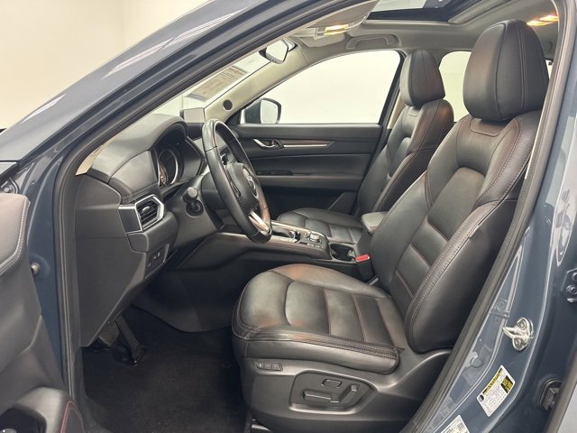 This 2024 Mazda CX-5 comes equipped with 10 Speakers, 4-Wheel Disc Brakes, 4.624 Axle Ratio, ABS brakes, Air Conditioning, Alloy wheels, AM/FM radio, AppLink/Apple CarPlay and Android Auto, Auto High-beam Headlights, Auto-dimming Rear-View mirror, Automatic temperature control, Brake assist, Bumpers: body-color, Delay-off headlights, Driver door bin, Driver vanity mirror, Dual front impact airbags, Dual front side impact airbags, E911 Automatic Emergency Notification, Electronic Stability Control, Emergency communication system: MAZDA CONNECT, Exterior Parking Camera Rear, Four wheel independent suspension, Front anti-roll bar, Front Bucket Seats, Front Center Armrest w/Storage, Front dual zone A/C, Front reading lights, Fully automatic headlights, Garage door transmitter: HomeLink, Heated Front Bucket Seats, Heated front seats, Illuminated entry, Infotainment System Voice Command, Leather Seat Trim, Leather Shift Knob, Leather steering wheel, Low tire pressure warning, Memory seat, Multifunction Commander Control, Occupant sensing airbag, Outside temperature display, Overhead airbag, Overhead console, Pandora, Panic alarm, Passenger door bin, Passenger vanity mirror, Power door mirrors, Power driver seat, Power Liftgate, Power moonroof, Power passenger seat, Power steering, Power windows, Radio Broadcast Data System Program Information, Radio data system, Radio: AM/FM/HD Audio System, Rain sensing wipers, Rear anti-roll bar, Rear reading lights, Rear seat center armrest, Rear window defroster, Rear window wiper, Remote keyless entry, SMS Text Msg Audio Delivery & Reply, Speed control, Speed-sensing steering, Split folding rear seat, Spoiler, Steering wheel mounted audio controls, Tachometer, Telescoping steering wheel, Tilt steering wheel, Traction control, Trip computer, Turn signal indicator mirrors, Variably intermittent wipers, and Wheels: 19 x 7J Aluminum Alloy.