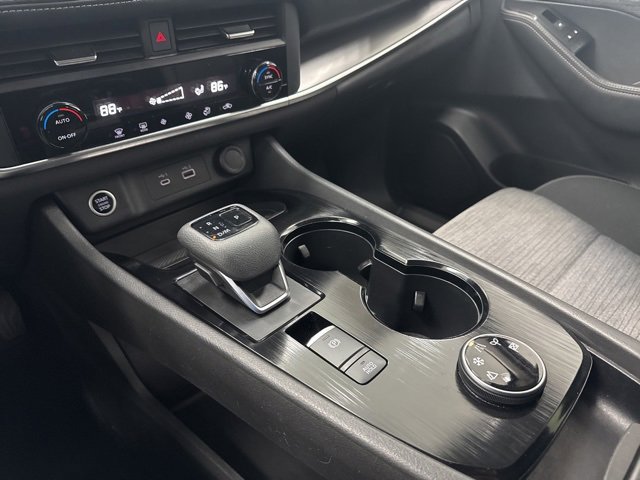 This 2023 Nissan Rogue comes equipped with AWD, 18 Aluminum Alloy Wheels, 4-Wheel Disc Brakes, 5.604 Axle Ratio, 6 Speakers, ABS brakes, Air Conditioning, Alloy wheels, AM/FM Radio, AM/FM radio: SiriusXM, Auto High-beam Headlights, Automatic temperature control, Brake assist, Bumpers: body-color, Cloth Seat Trim, Delay-off headlights, Driver door bin, Driver vanity mirror, Dual front impact airbags, Dual front side impact airbags, Electronic Stability Control, Emergency communication system: NissanConnect Services, First Aid Kit, Floor Mats w/1-Piece Cargo Area Protector, Four wheel independent suspension, Front anti-roll bar, Front Bucket Seats, Front Center Armrest, Front dual zone A/C, Front reading lights, Fully automatic headlights, Heated door mirrors, Illuminated entry, Knee airbag, Low tire pressure warning, NissanConnect featuring Apple CarPlay and Android Auto, Occupant sensing airbag, Outside temperature display, Overhead airbag, Overhead console, Panic alarm, Passenger door bin, Passenger vanity mirror, Power door mirrors, Power driver seat, Power steering, Power windows, Radio data system, Rear anti-roll bar, Rear Parking Sensors, Rear seat center armrest, Rear side impact airbag, Rear window defroster, Rear window wiper, Remote keyless entry, Speed control, Speed-Sensitive Wipers, Split folding rear seat, Spoiler, Steering wheel mounted audio controls, Tachometer, Telescoping steering wheel, Tilt steering wheel, Traction control, Trip computer, and Variably intermittent wipers.