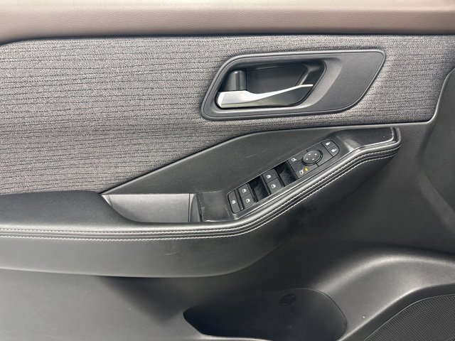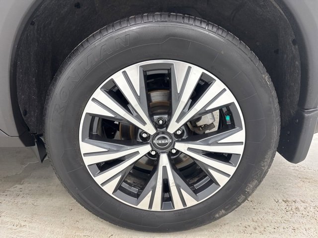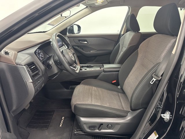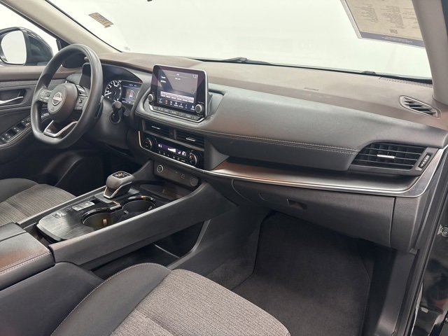 This 2023 Nissan Rogue comes equipped with 18 Aluminum Alloy Wheels, 4-Wheel Disc Brakes, 5.604 Axle Ratio, 6 Speakers, ABS brakes, Air Conditioning, Alloy wheels, AM/FM Radio, AM/FM radio: SiriusXM, Auto High-beam Headlights, Automatic temperature control, Black Splash Guards (Set of 4), Brake assist, Bumpers: body-color, Chrome Rear Bumper Protector, Cloth Seat Trim, Delay-off headlights, Driver door bin, Driver vanity mirror, Dual front impact airbags, Dual front side impact airbags, Electronic Stability Control, Emergency communication system: NissanConnect Services, Floor Mats w/1-Piece Cargo Area Protector, Four wheel independent suspension, Front anti-roll bar, Front Bucket Seats, Front Center Armrest, Front dual zone A/C, Front reading lights, Fully automatic headlights, Heated door mirrors, Illuminated entry, Knee airbag, Low tire pressure warning, NissanConnect featuring Apple CarPlay and Android Auto, Occupant sensing airbag, Outside temperature display, Overhead airbag, Overhead console, Panic alarm, Passenger door bin, Passenger vanity mirror, Power door mirrors, Power driver seat, Power steering, Power windows, Radio data system, Rear anti-roll bar, Rear Parking Sensors, Rear seat center armrest, Rear side impact airbag, Rear window defroster, Rear window wiper, Remote keyless entry, Speed control, Speed-Sensitive Wipers, Split folding rear seat, Spoiler, Steering wheel mounted audio controls, Tachometer, Telescoping steering wheel, Tilt steering wheel, Traction control, Trip computer, and Variably intermittent wipers.