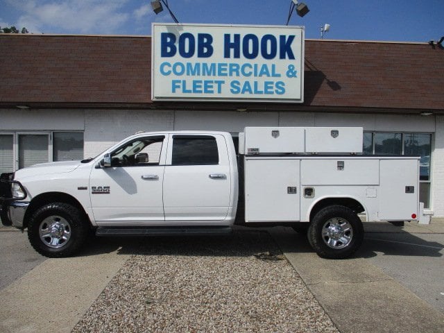 2016 Ram 3500 Crew Cab 4X4 Single Rear Wheel with a Service Body. This 3500 is powered by the dependable, hardworking 6.4L and 6-Speed Automatic. These don't last very long so do yourself a favor and stop clicking and call Toll free 888-630-1622 for one of our Commercial Vehicle Specialist. You may find a cheaper truck, but you will not find a one that has been reconditioned mechanically to our standards. We are considered one of the Premier Commercial Truck Centers for New and Pre-owned work vehicles in the country. Bob Hook Chevrolet is family owned and operated since 1953, celebrating 70 years in business this year. All retail ready units have been serviced to assure that every client is Completely Satisfied. Our #1 Goal is for all our work-related vehicles to exceed your expectations.